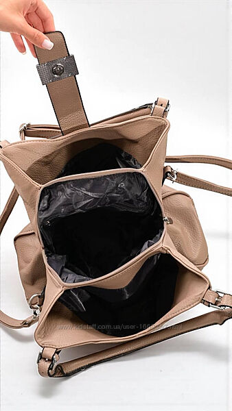 Сумка виготовлена зі штучної шкіри, застібається на кнопкуСумка має три відділи, один з яких на блискавці, 3 кишені, одна з яких на блискавці