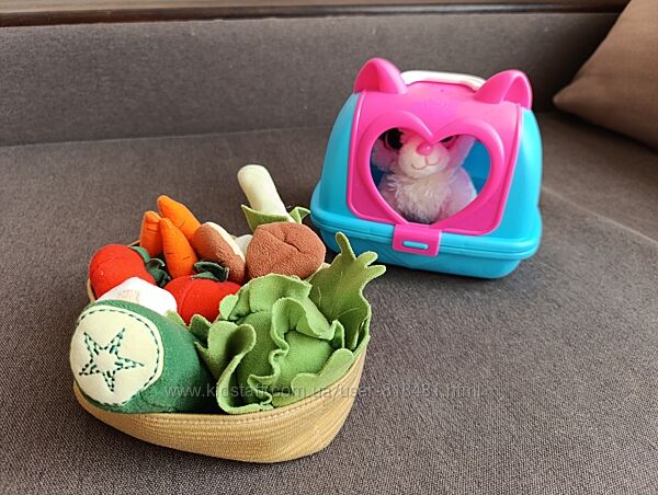 Котенок с переноской Pets Alive и корзина овощей Ikea