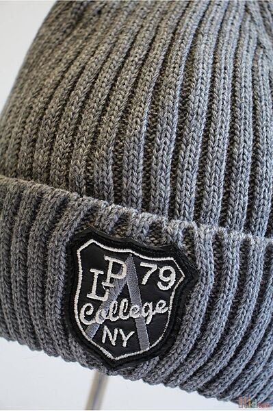 Шапка має злегка подовжену верхівку і широкий відворот. Усередині вона утеплена флісовою підкладкою для додаткового комфорту. Прикрашає виріб рельєфний принт із вертикальними смугами та акуратна невелика нашивка. Це зручний та практичний вибір для прохолодної погоди.