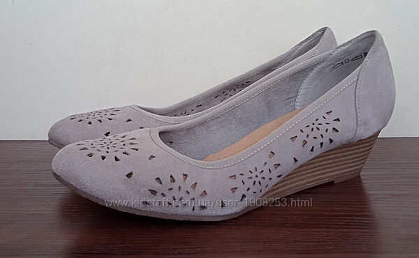 Подробное описание: Натуральні замшеві туфлі, жіночі човники на танкетці, літо демі, р. 37-37.5