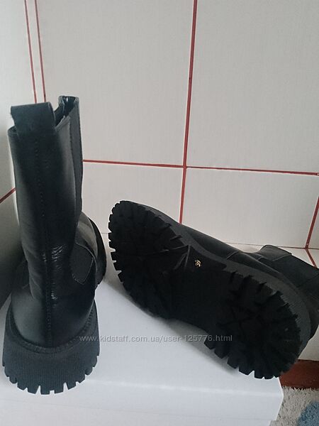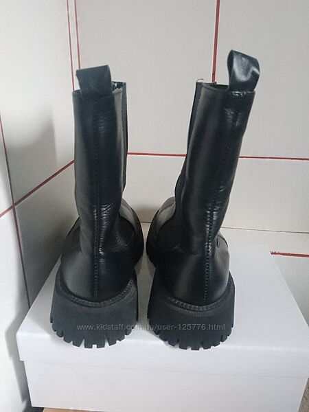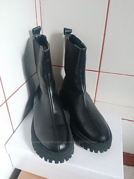 Стильні зимові Челсі, натуральна шкіра, на хутрі. 39розмір, устілка 25,5см. Краще підійдуть на стопу 25см.На вузеньку ніжку. На високий підйом не підійдуть. Нові. Товщина підошви ззаду 5см спереду 3см.
