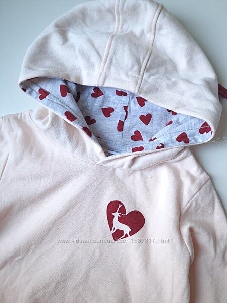 Спортивний теплий костюм на флісі для дівчинки. Кофта з капюшоном, еластичні манжети рожевого/бежевого кольору, штани на резінці та завязках сірого кольору у серця.Склад