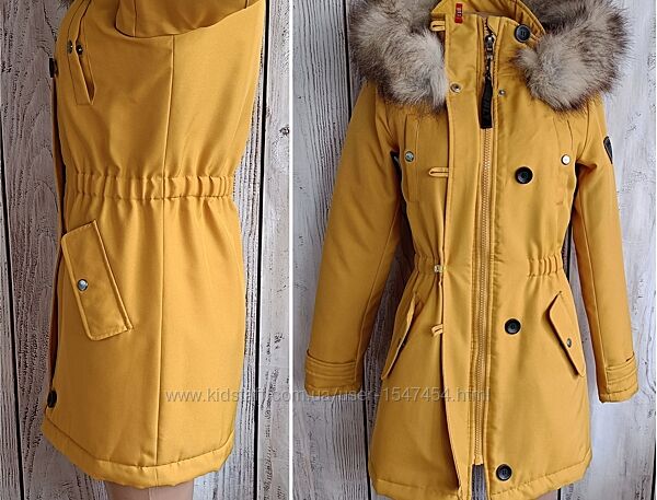 Сезон евро зима. Прямой крой, приталенный на талии широкой резинкой. Верх - слабо мнущаяся ткань - не оставляет глубоких заломов, "гармошку", не поддается деформации и протиранию - 100% полиэстер. Подкладка стеганная с утеплителем. В рукавах и капюшоне плотный слой утеплителя -если поддеть жилетку - можно использовать в мороз. Застежка молния по центру под ветрозащитной планкой на четырех пуговицах с логотипом и одной кнопке. 4 прорезных кармана на кнопках с логотипами бренда. Высокий воротник-стойка. Не съемный глубокий капюшон со съемным