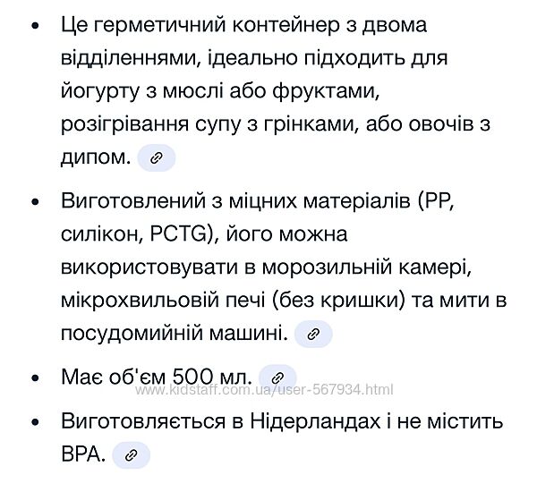дипом.Виготовлений з міцних матеріалів (РР, силікон, PCTG), його можна використовувати в морозильній камері, мікрохвильовій печі (без кришки) та мити в посудомийній машині. •Має обʼєм 500 мл.Виготовляється в Нідерландах і не містить хімії .