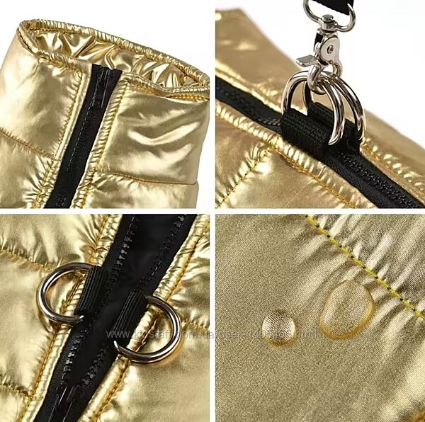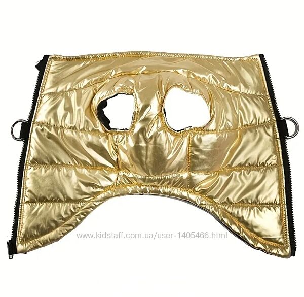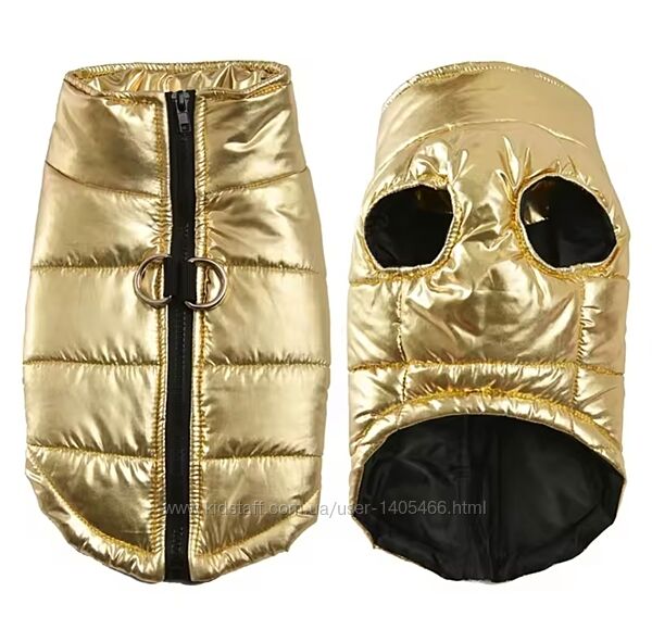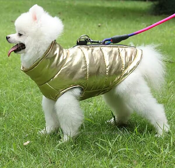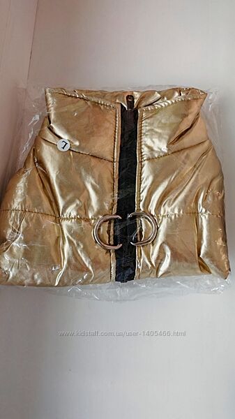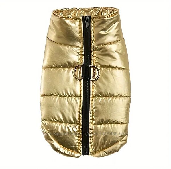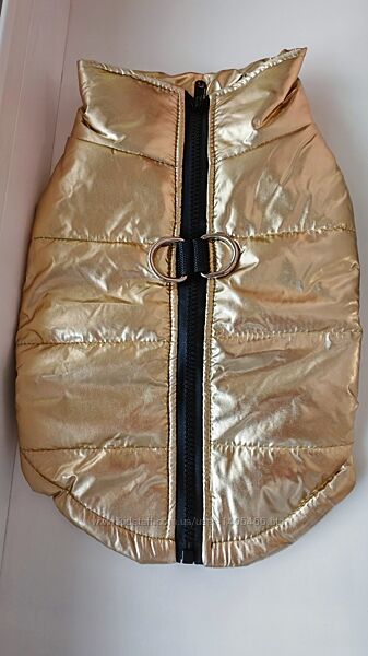 Новий яскравий жилет золотого кольору для вашого улюбленця. На тонкому синтепоні. Водовідштовхуюча тканина, ідеально на брудну погоду. Зручна застібка-блскавка на спинці, має кільця під повідець.Розмір: L