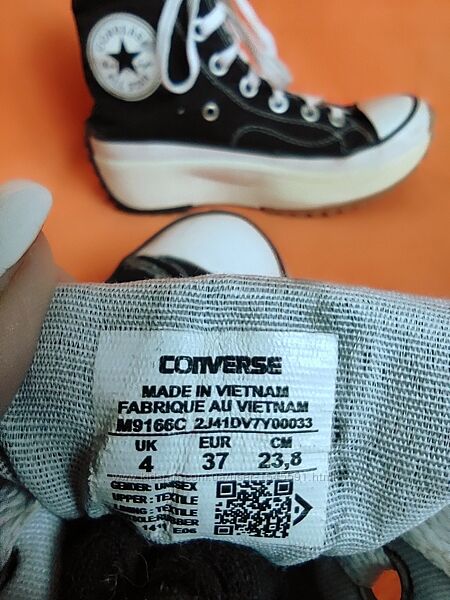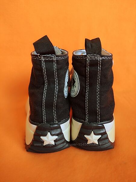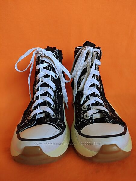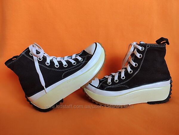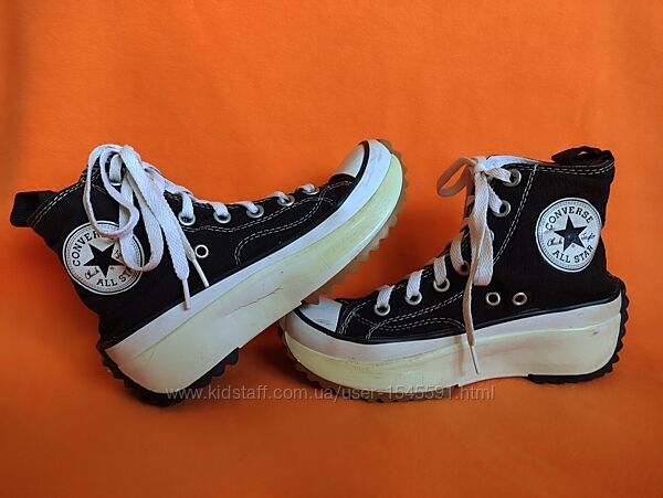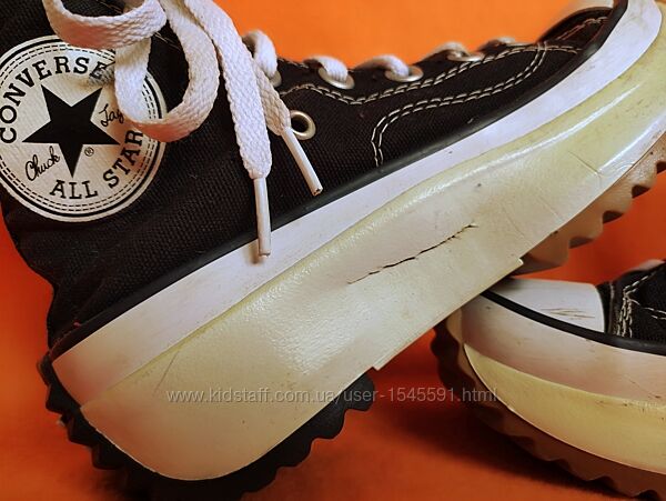 --Високі high на платформі конверси Run Star. Вироблені у В´єтнамі. Загалом стан хороший, без зносу верху та підошви. Але є дефект-тріщинана платформі лівого зсередини. Також пожовкли бокові частини платформ.