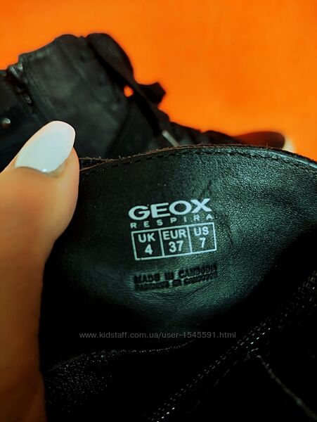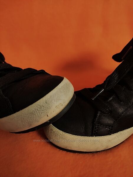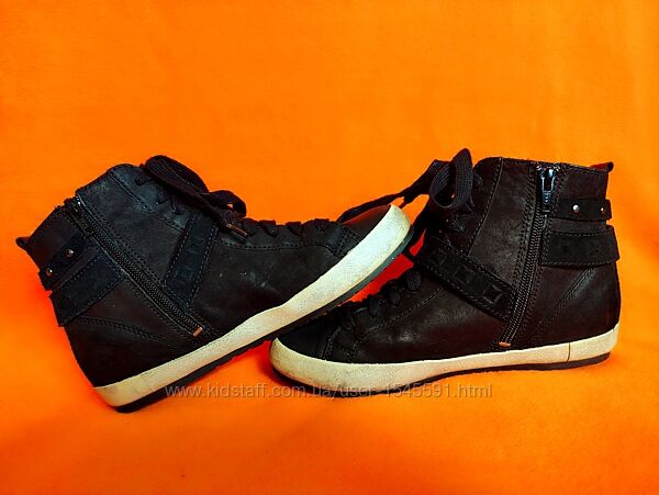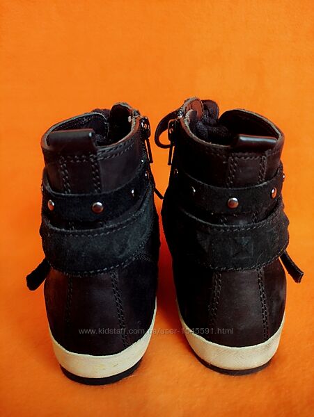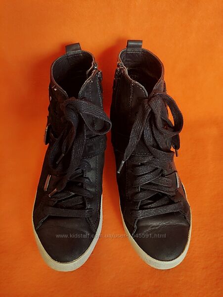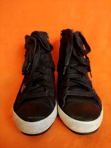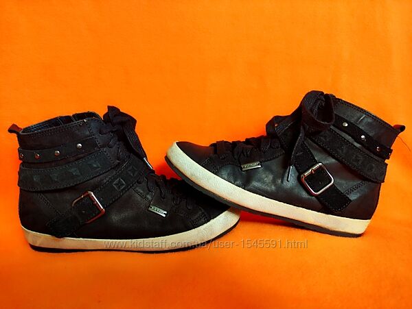 --Високі кросівки італійського бренду Geox, відомого своєю дихаючою технологією взуття.--Стан дуже хороший, без зносу та пошкоджень верху та підошви. Всередині теж все чудово. Не промокають. Нюанс-бокові частини підошви мають забруднений вигляд та не відмиваються, жовтуваті.