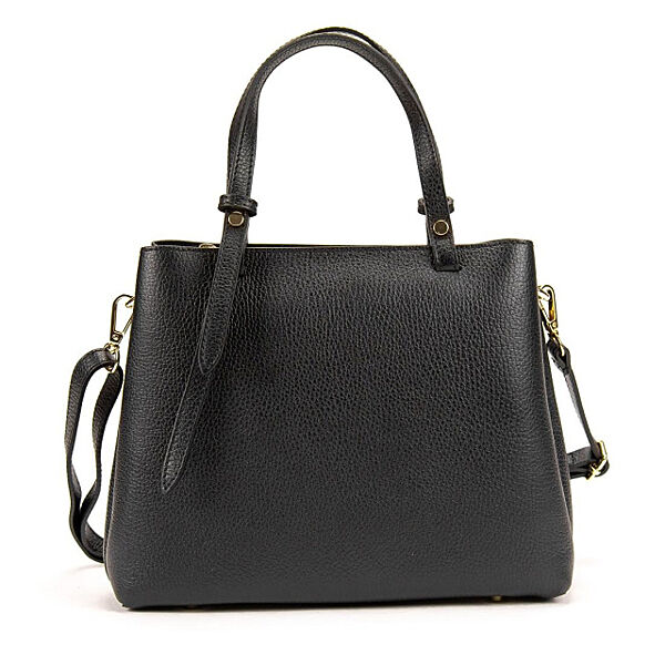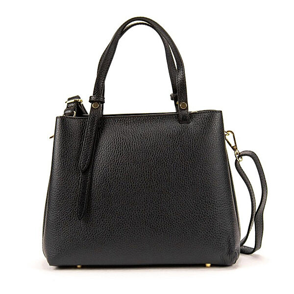 Шкіряна класична жіноча сумка тоут Італія чорна 78705AНатуральна шкіра щільна, добре тримає форму навіть порожня.