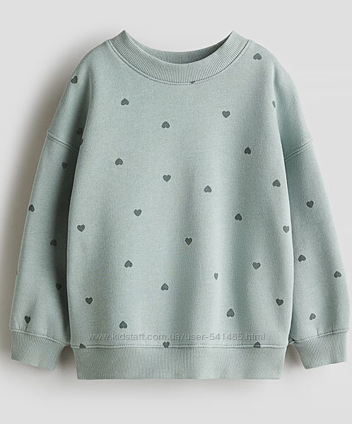 Світшот для дівчинки із м´якого трикотажу. З внутрішньої сторони начіс. По вирізу горловини, низу рукавів та низу виробу трикотажна резинка. Із колекції дитячого одягу провідного європейського бренду H&M.Розмір у наявності: 6-8 років, зріст 122-128 см