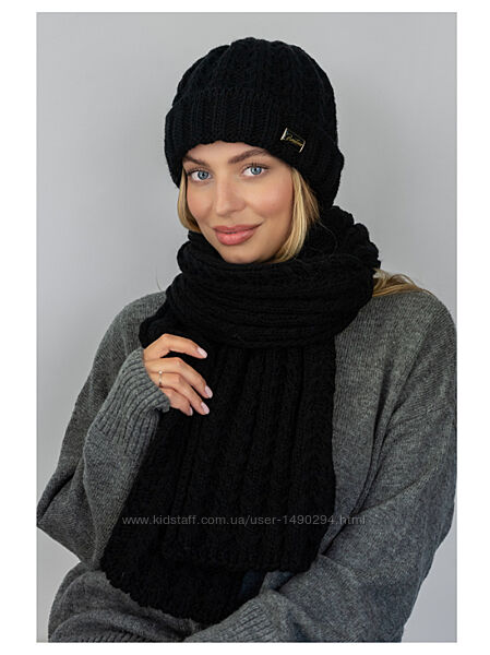 Шапка женская на флисе с шарфом комплект Нордик черний