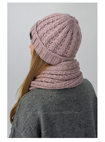 Подробное описание: Шапка женская на флисе с шарфом комплект Нордик темная пудра