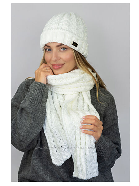 Шапка женская на флисе с шарфом комплект Нордик белый