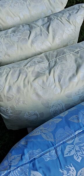 Натуральні подушки з гусячого пір´я та пуху. (50% пух, 50% пір´я).Набиті вручну, подушки м´які, пухкі, напірники нові, щільні (пух не перелазить), з набивним малюнком.