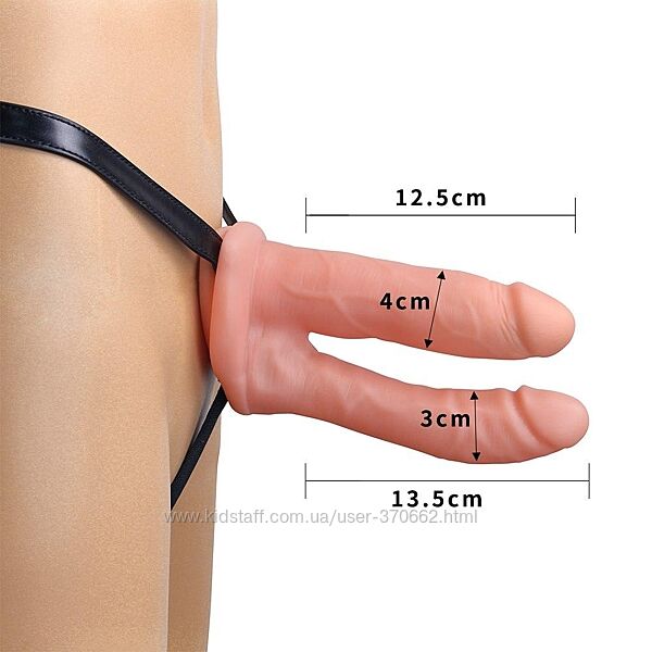 Порожнистий страпон з подвійною проникною насадкою - це ідеальне рішення для пар, які хочуть урізноманітнити інтимне життя і випробувати нові відчуття. Завдяки двом насадкам — вагінальній та анальній — іграшка забезпечує повне та насичене задоволення, залишаючись при цьому зручною та безпечною для використання.Довжина вагінальної насадки становить 6 дюймів, а анальної - 6,25 дюйми, що робить їх ідеальними для комфортного та глибокого проникнення. Страпон легко надягається завдяки регульованим ременям, які підходять для більшості розмірів, а м´який та безпечний матеріал не викликає подразнень та підходить навіть для чутливої шкіри.