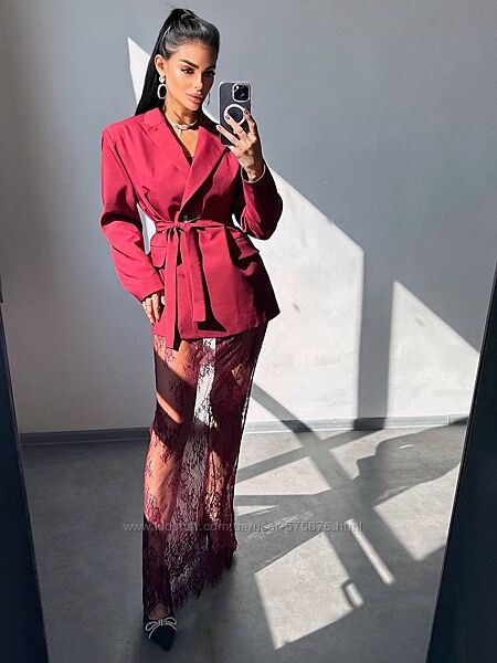 Подробное описание: S/M/L Комплект піджак блуза з баской та мереживна спідниця шорти