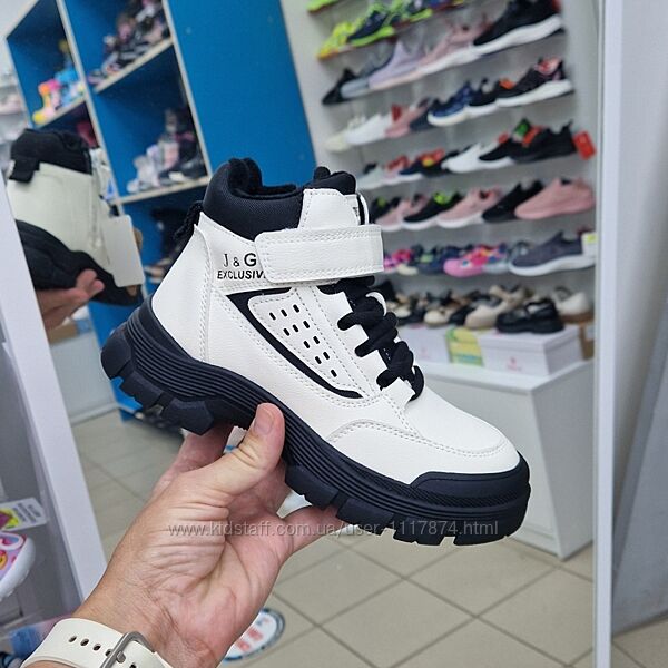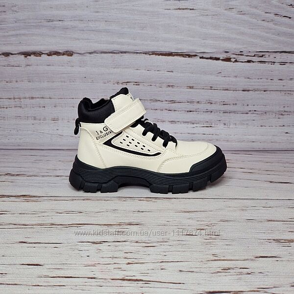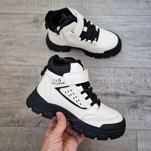 Стильні дитячі водонепроникні демісезонні утеплені черевики унісекс з water proof Jong-Golf✔ Сезон: осінь-весна✔ Колір: модний білий з контрастними чорними деталями – легко поєднується з будь-яким одягом
