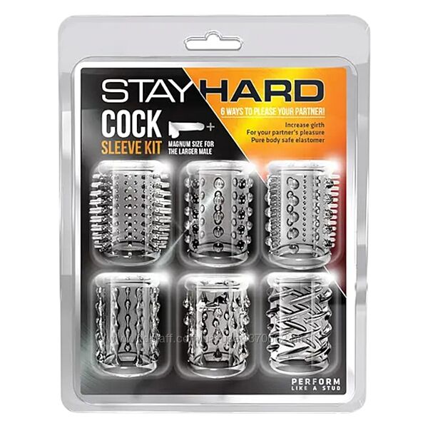 Набір насадок Blush Stay Hard Cock Sleeve Kit прозорий це універсальний комплект із 6 еластичних насадок з різною текстурою, розроблений для посилення стимуляції потовщення та різноманітності інтимних відчуттів. Кожна насадка легко надівається на пеніс фалоімітатором або вібратором надаючи додатковий рельєф і щільність для більш яскравих контактів.Основні властивості: