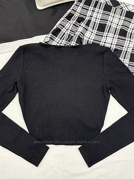 Подробное описание: Zara новий топ з довгим рукавом у рубчик, кроптоп/лонгслів на завязках, М/L