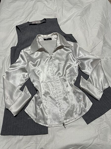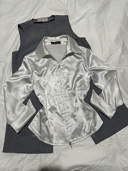 Продам корсетну (з кісточками) шовкову/атласну сорочку з довгим рукавом. Блуза класична базова, гарно підійде для офісу/школи.Колір: біла