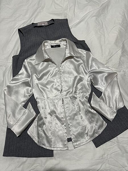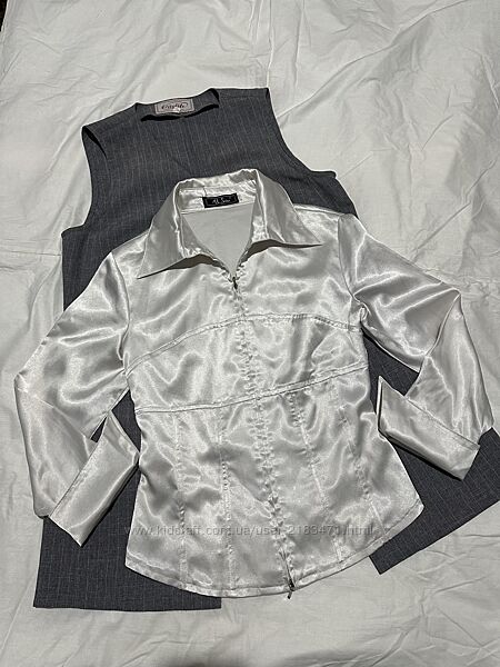 Подробное описание: Біла корсетна шовкова/атласна сорочка, класична базова ділова блуза, XS/S
