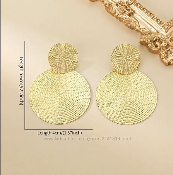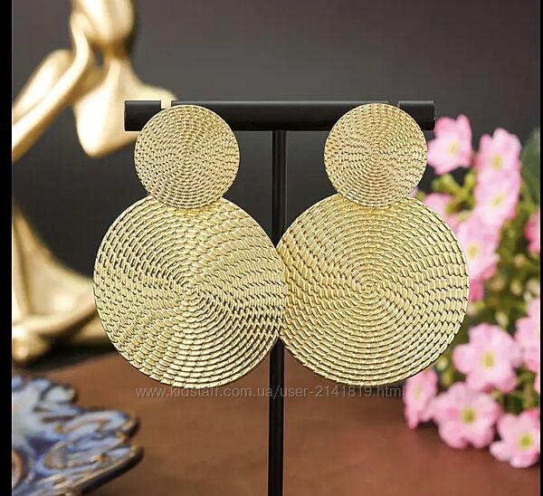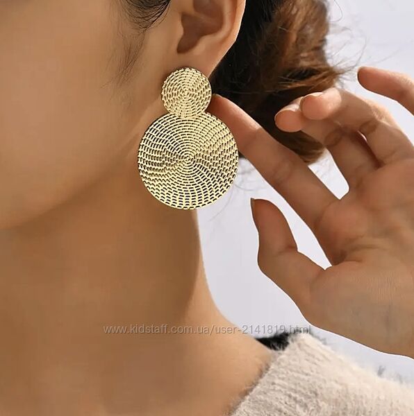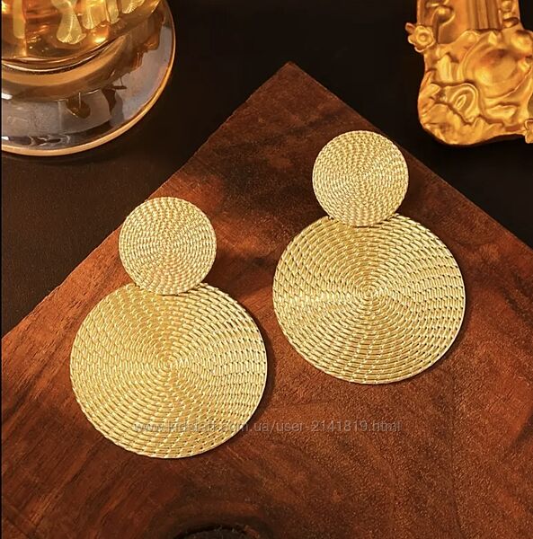 Подробное описание: Геометрические серьги круглой формы, золотистые серьги в виде круга