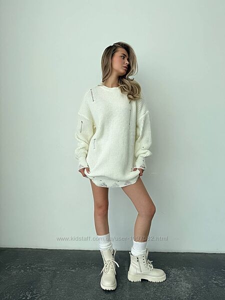 Інші светри нашого магазину Ви можете переглянути за посиланням: https://www.kidstaff.com.ua/user-anno-1997582/sect...В´язаний светр вільного крою, прикрашений декоративними розривами. Модель вирізняється широким рукавом із заниженою лінією плеча і манжетами, на яких також присутні розриви.