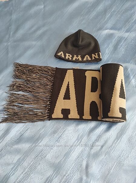 Подробное описание: Комплект Armani шарф з китицями шапка, унісекс.