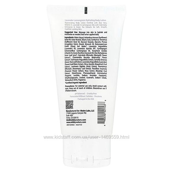 ОписЗволожувальний лосьйон для тіла Mild by Nature , лаванда й лемонграсАлое вера, вітамін E,
