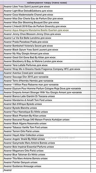 Подробное описание: Парфуми, наливні аналогові