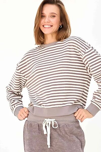 Класний домашній костюм NavialeВ основі виробу — матеріал French Terry: щільне трикотажне полотно, яке має петельчасту текстуру з лицьового боку та гладку зворотню поверхню.