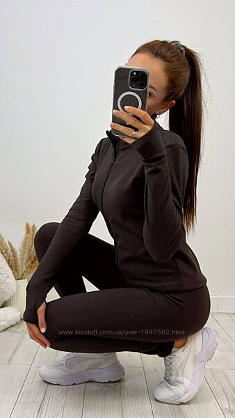 Костюм кофта на змійці, на рукаві виріз для пальця, лосини талія на резинці