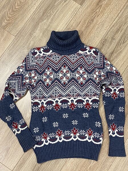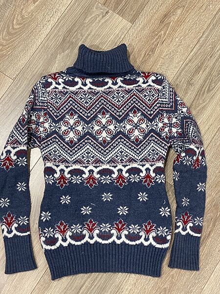 Вовняний светр, розмір S. В ідеальному стані, довжина 62 см, плечі 37 см, рукав 61 см, нпог- 39 см, талія 1/2- 36 см, стегна 1/2- 39 см. 50%- вовна, 50% -акрил.Другие объявления продавца