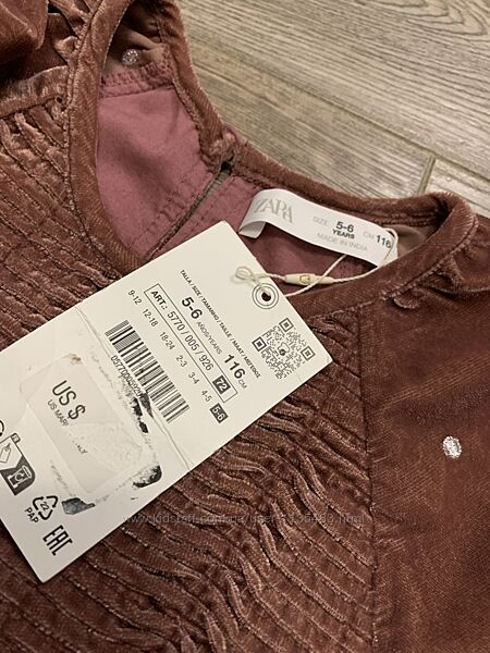Оксамитова сукня Zara на вік 5-6 років/116 см.