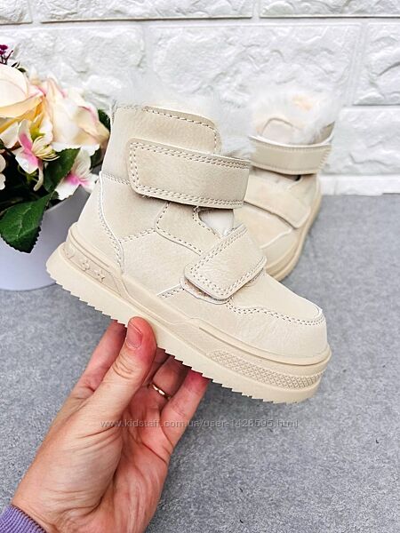 К.1887Чудові чобітки для дівчат Clibee, верх високоякісна еко-шкіра, в середині 60% натуральна овчина, регулюються 2 липучками та замочком, колір бежевийі чорний.