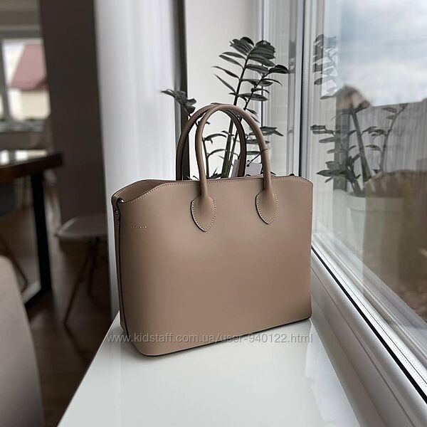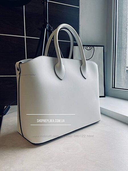 Сумка белая кожаная женская итальянская каркасная шоппер тоут31×24×14 см.