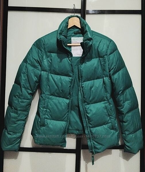 Продам тёплый,зелёный пуховик бренда Bennetton. Сшит добротно и качественно. Модель приталиная. Состав: 80%пух 20%перо. Размер указан М,но подходит и на S. Одевался считанные разы,состояние идеальное.