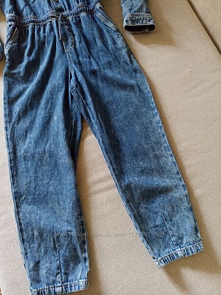 Комбінезон джинсовий для дівчинки 10-11 років. Розмір вказаний 148. Стан практично новий, вдягнули один раз.Довжина від плеча 116 см, рукав від плеча 46 см, плечі 40 см, ПОГ 46 см, ПОТ 34 см.