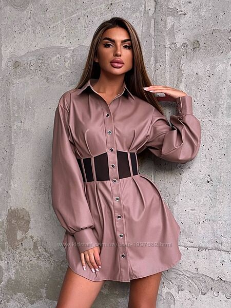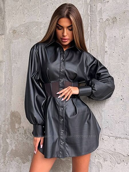 Подробное описание: Сукня-сорочка з корсетними елементами з еко-шкіри