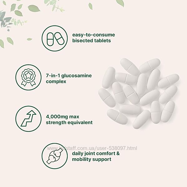 Почувствуйте комфорт суставов благодаря нашему комплексу глюкозамина 7 в 1, универсальной формуле, созданной для ежедневной гибкости. Эта улучшенная формула, содержащая эффективную смесь глюкозамина, хондроитина, МСМ, куркумы, босвеллии, гиалуроновой кислоты и коллагена, способствует здоровью и подвижности суставов при любом образе жизни. Она содержит антиоксиданты, травы, минералы и питательные вещества, омолаживающие при старении, которые помогут вам с легкостью двигаться, чтобы вы могли получать поддержку на каждом этапе этого пути.