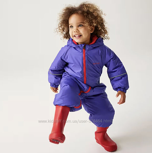Непромокальний комбінезон-дощовик відомого англійського бренду легкий, непромокальний, під нам тонкий шар утеплювача, тканина "дихаюча", всі шви проклеєні.Є світловидбивні деталі