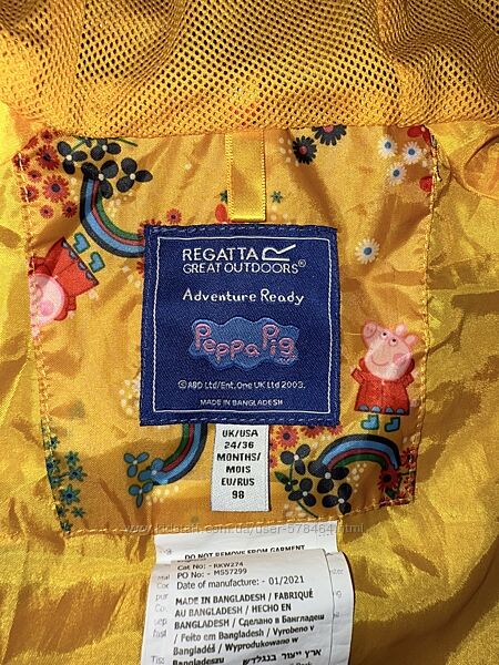 Подробное описание: Комбінезон, вітровка-дощовик, грязепруф regatta свинка пеппа 2-4 р Не ношен