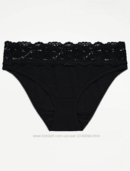 Дуже гарні жіночі трусики чорного кольору з мереживом від George (Англія).Ціна за набір з 5 шт.