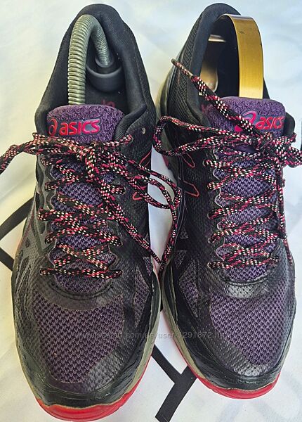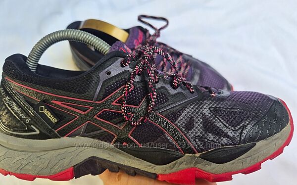 GEL-FujiTrabuco 6 G-TX ідеальний варіант для походів, а також тренувань в негоду розмір 38 устілка 24,5 с загином ширина 10см, \на широку повноту стопи не підійдуть Кросівки-позашляховики для бігу жіночі Asics GEL-Fujitrabuco 6 G-TX чорно-фіолетові поєднують у собі підтримку, захист, зчеплення та функціональність для комфортного бігу в некомфортних умовах. Gel-Fujitrabuco 6 G-TX - це універсальні водонепроникні кросівки з агресивним протектором для трейлраннінгу для всіх типів бігових поверхонь від асфальту до скелястого покриття.
