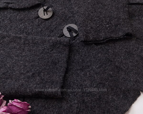 Мягкий, теплый, уютный, свободного кроя, с карманами. Ворот шалевый с изящной драпировкой, рукава широкие, можно носить с отворотом, застегивается на крупные акцентные декоративные деревянные пуговицы.