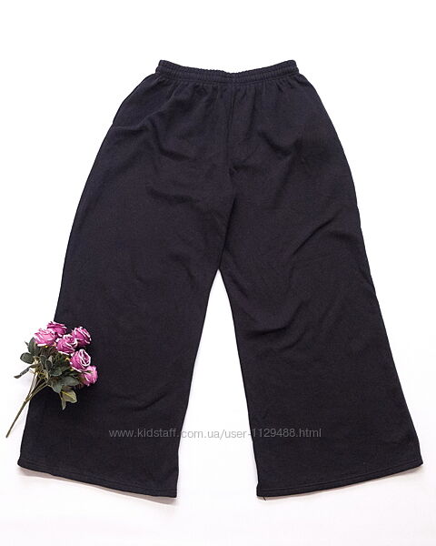 Мягкие, уютные, свободного расслабленного кроя, в поясе широкая резинка и шнурок, посадка высокая, в боковых швах карманы. Штанины длинные, очень широкие. Выполнены из плотного трикотажа с начесом в насыщенном черном цвете.