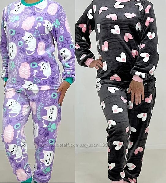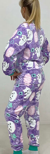 Неймовірна тепла махрова піжамка з котиками, манжетамиі, якість чудова, приємна на дотик, повномірнаМатеріал: махра велсофт гладка зовнішня сторона та пухнаста всередині