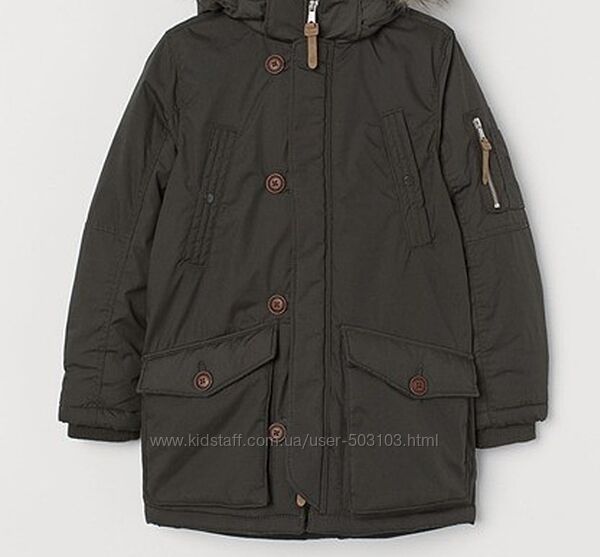 Парка зимова HM, на зріст 158-164. Заміри: довжина по спинці 84 см, довжина перед 78, довжина рукава від плеча 63(з манжетом 66), ширина під мишками 52 см, ширина плеч 43 см. Колір темно-зелений. Наповнювач холлофайбер. Дуже стильна і тепла. Парка в ідеальному станіДругие объявления продавца