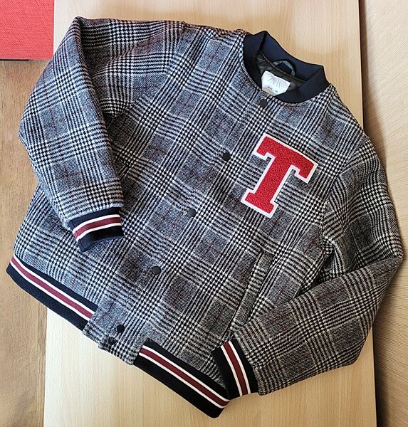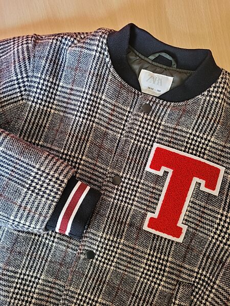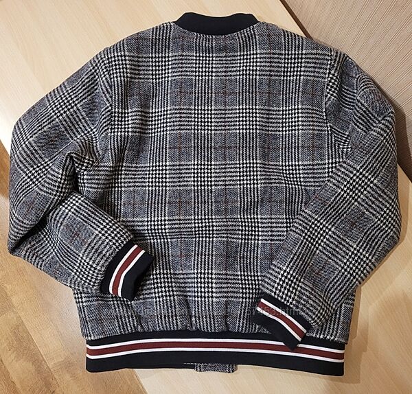 Продам куртку-бомбер Zara для хлопчика, розмір 164. Б/в декілька разів, стан нової речі, без нюансів. Верхня тканина 45% вовна, 52% поліестер, 3% інші волокна. Наповнювач - поліестер. Підкладка - поліестер.Застібка на кнопках. Довжина 60 см, ширина 55 см, плече+рукав 73 см.
