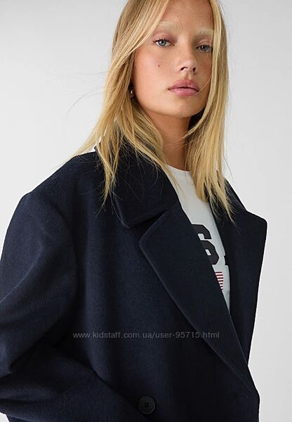 Подробное описание: Довге пальто оверсайз з суміші вовни Stradivarius - XS, S, M Темно - синє