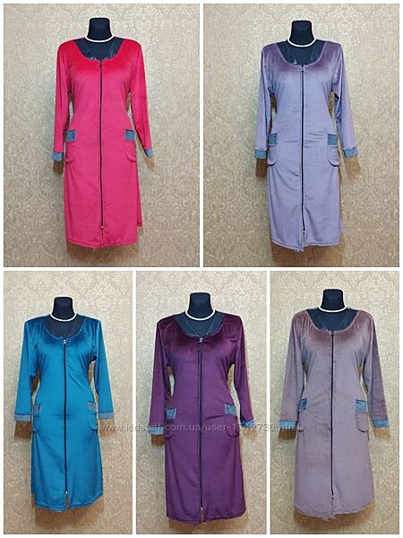 Подробное описание: Жіночий велюровий халат на блискавці з кишенями та поясом